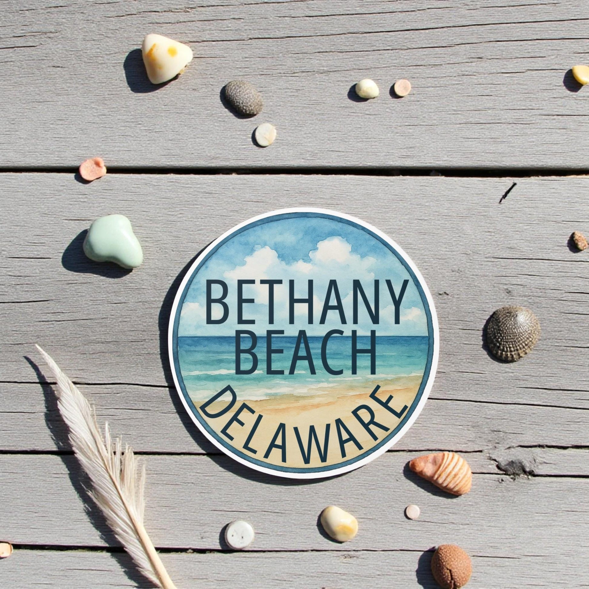 Bethany Beach Delaware stickers that are perfect for both indoor and outdoor use. The vibrant colors and UV protective laminate make them durable and long-lasting. These custom round stickers have a matte finish, waterproof sticky adhesive, and easy peel backing.